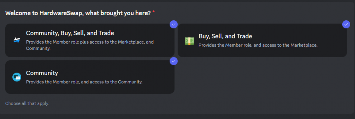 The other questions are optional and will give extra channels depending on which hobby you want to discuss, and which community channels you are interested in.